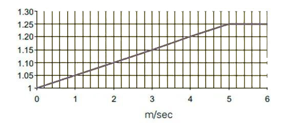 3)是否密封(定義為Ks):EV/HEV的熔斷器通常都會安裝在狹小密閉環(huán)境內,這會導致熔斷器在工作時的熱量不易散失,溫度升高。建議采用Ks=0.8進行降額修正; 風速修正系數(shù)曲線如下:
