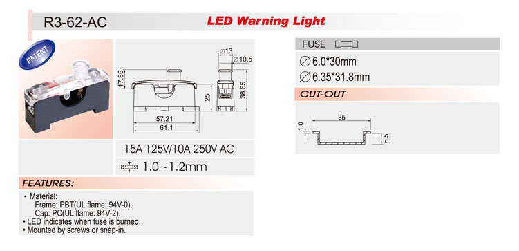 6*30軌道安裝保險(xiǎn)絲座 R3-62 15A250V