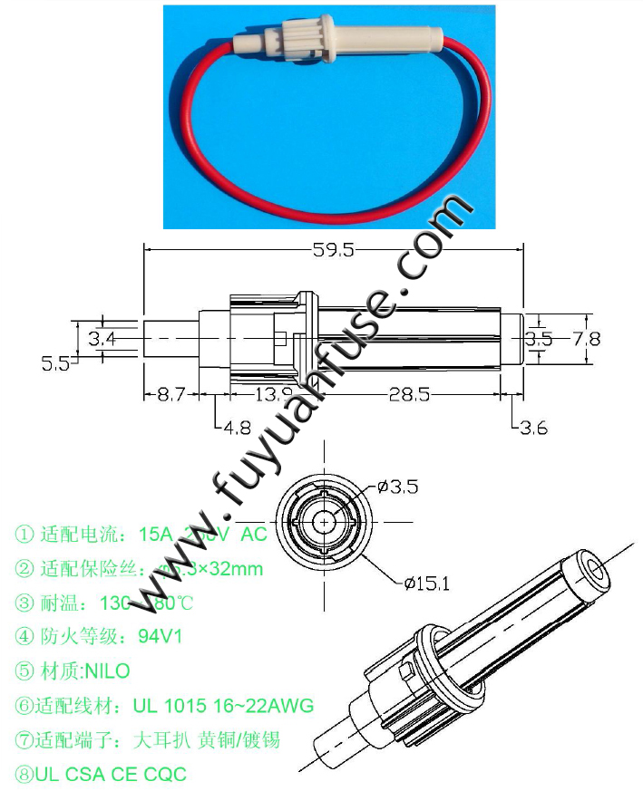 6*30拉線盒保險(xiǎn)絲座 H3-630NL-1 20A250V