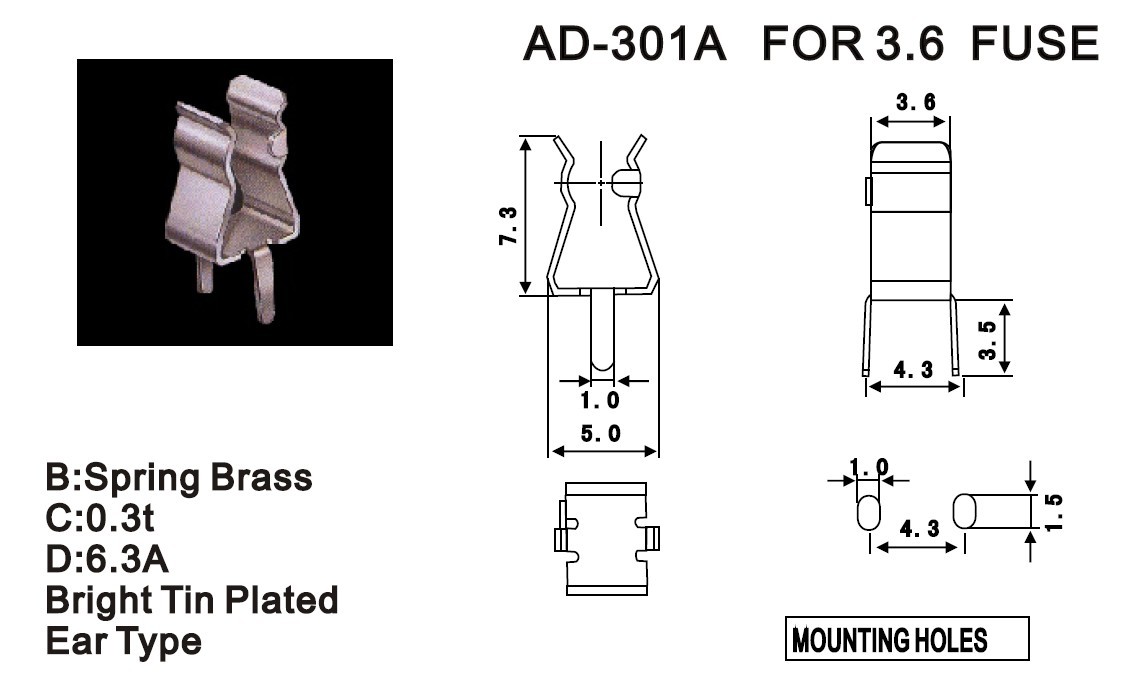 3.6*10 PCB板安裝保險絲夾 AD-301 ROHS