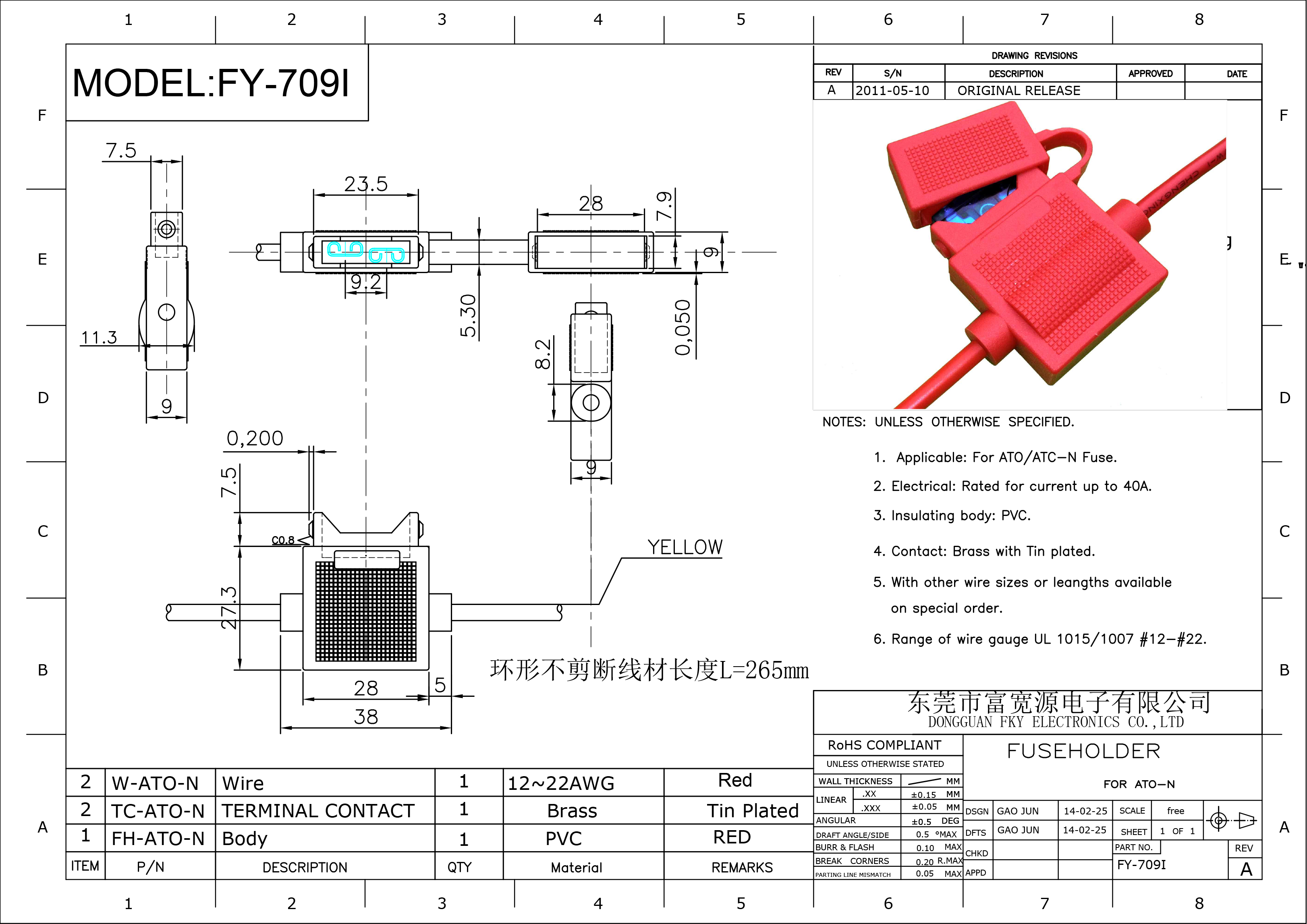 中號插片方形防水保險絲座 FY-709I CE IP65